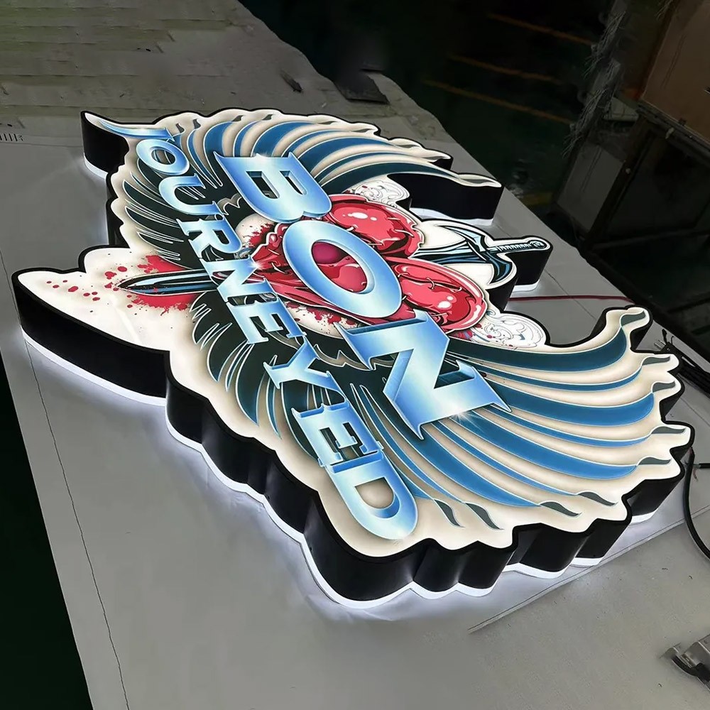 Custom shape 3D LED lightboxes are illuminated sign boxes made to any shape, size, or design requirement. Unlike standard rectangular signs, these lightboxes can be produced in round shapes, rectangular shapes, or completely custom shapes that follow your logo or brand identity precisely.