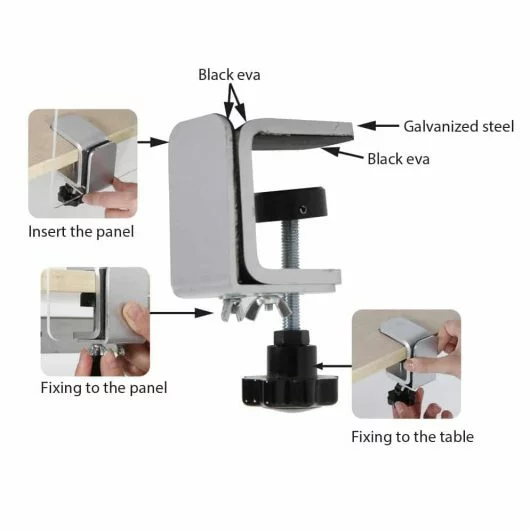 The Removable Edge Clamp Kit is the perfect solution for creating a protective barrier or holding signage at the front of a desk, table, or counter. Designed to fit surfaces between 6 mm and 40 mm thick, it offers versatile use in office spaces, cashier stations, and customer service counters.