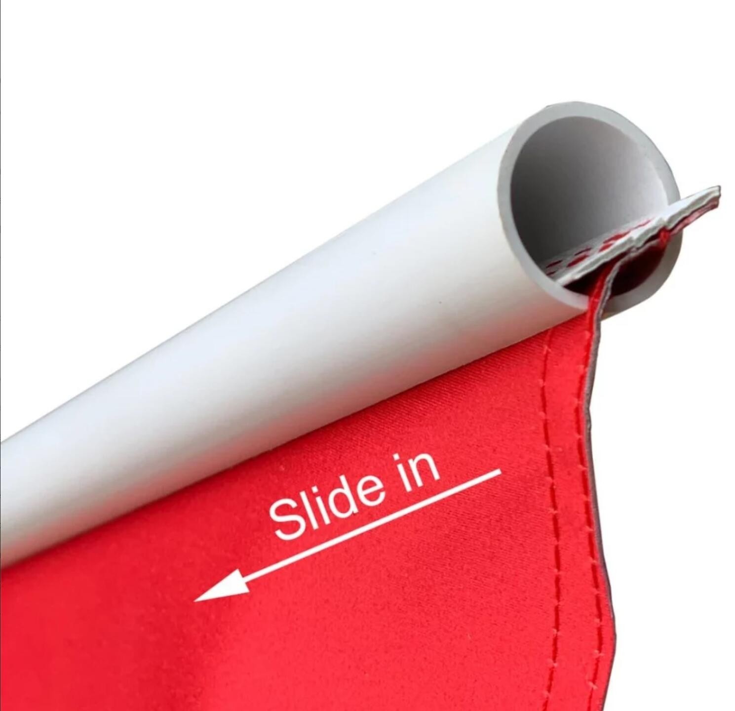 THIS FLAG CAN BE ATTACHED TO WALL AS SHOP SIGNAGE,